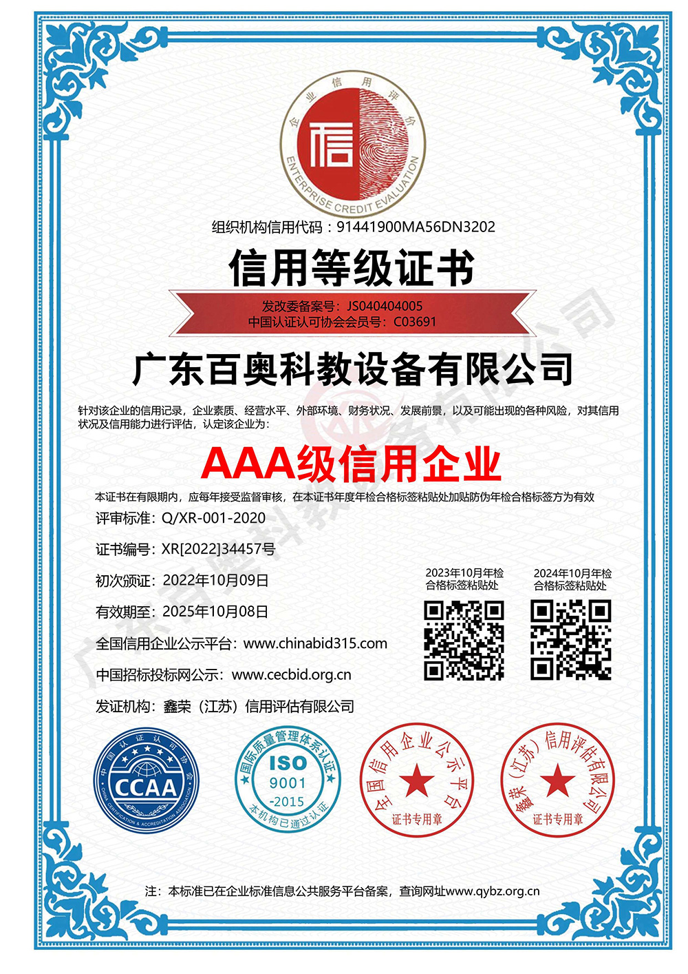 • 資信等級證書